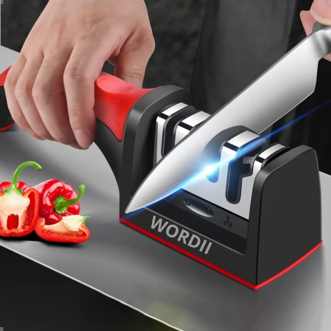 fiador de Facas Profissional 3 Estágios Amolador Manual com Base Antiderrapante e Cabo Ergonômico